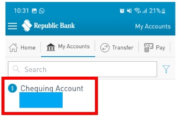 iii. Go to the account that is linked to your cheque book