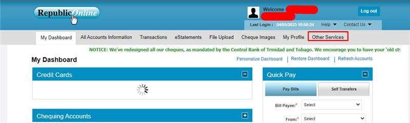 Login and then from dashboard, select “Other Services”