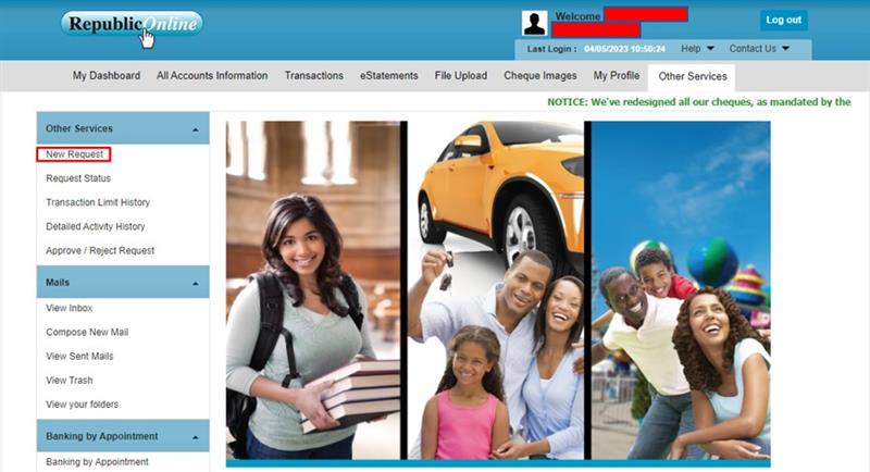 If you do not replace your cheques, the old-format cheques will not be accepted by any Bank in Trinidad and Tobago. As such, you will be required to transact from your chequing account via other means, for example: branch, ATM or online banking services – RepublicOnline and RepublicMobile App.
