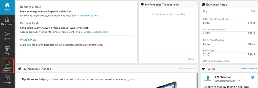 b. via the Service Request menu on RepublicOnline.